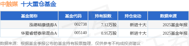根据2025基金年报公募基金重仓股数据,重仓该股的公募基金共2家,其中持有数量最多的公募基金为泓德基金的泓德裕康债券A。泓德裕康债券A目前规模为18.64亿元,最新净值1.3978(3月20日),较上一交易日下跌0.31%,近一年上涨8.11%。该公募基金现任基金经理为刘星洋 刘风飞。刘风飞在任的基金产品包括:泓德裕祥债券A,管理时间为2024年9月26日至今,期间收益率为10.2%;泓德裕荣纯债债券A,管理时间为2025年2月8日至今,期间收益率为4.36%;泓德裕丰中短债债券A,管理时间为2025年2月8日至今,期间收益率为1.39%。
